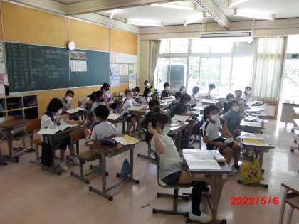 学習参観でグループ発表した内容を全員で確認して、白地図に書きこみました。