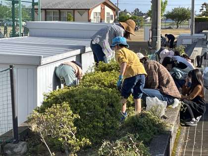 樹木やチューリップを痛めないように丁寧に雑草をとりました。