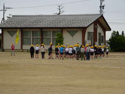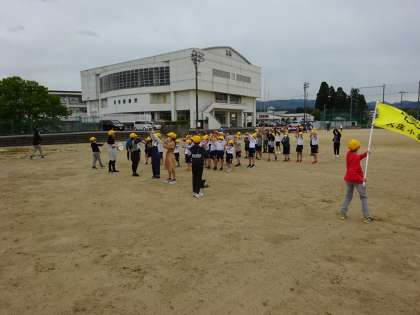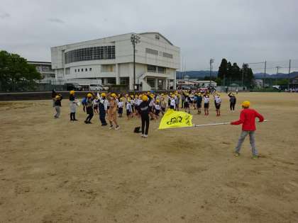黄団は応援リーダーの動きにそろえるように練習を進めていました。