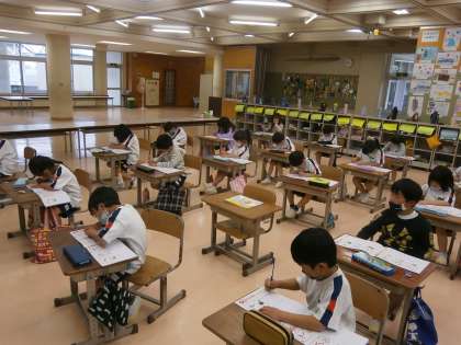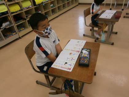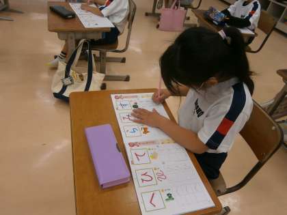 ゴールデンウィークが終わり、学校生活再始動です。みんなの元気な様子にほっとしました。運動会練習や朝顔の種まきと忙しいですが、ひらがなの練習も落ち着いてしっかりと集中してすることができました。書き終わったあとの待つ姿勢もとてもいいです!