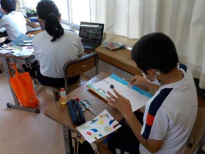 今日は「絵の具で夢もよう」の作品を仕上げました。