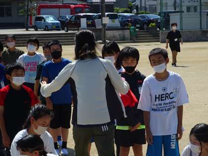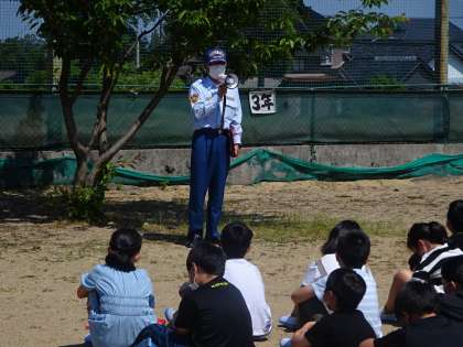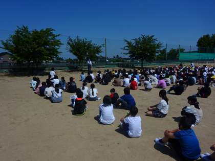 今年度初めての外への避難でしたが、6年生がさっと並んでくれたので、他の学年も迷わず並ぶことができました。