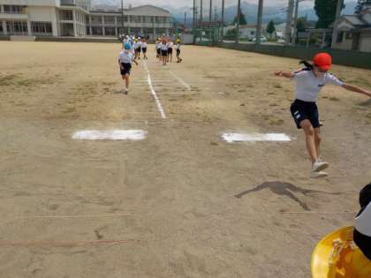 今日は、踏切の際の膝と腕の振り上げを練習した後、踏切にぴったり合う助走の距離を決めるため、試技を繰り返しました。