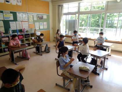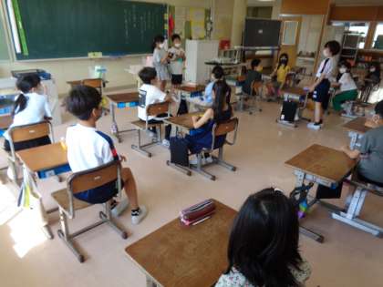 朝の時間には、クイズ会社がクイズ大会を開催しました。5ポイントたまるとすてきな景品が用意されているようです。ポイント獲得を目指して意欲的に参加する子供たちでした。