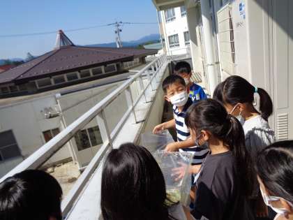 教室で育てていたモンシロチョウが成虫になっていました。寂しさもある中、みんなで見守りながら外の世界に返してあげました。「また卵を産みに戻ってくるかな」と話している子供もいました。