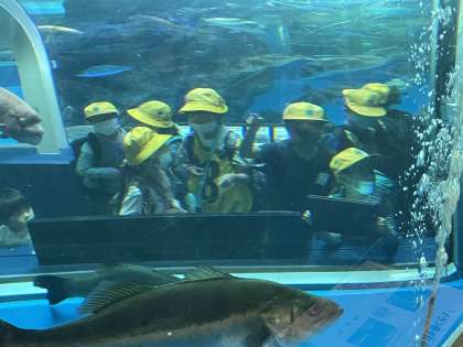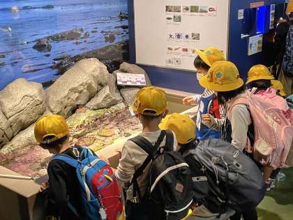 グループに分かれて見学中 いろいろな生き物がいて大盛り上がりです。