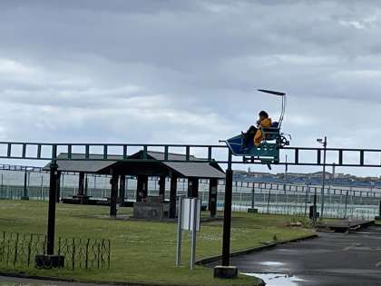 グループで相談して決めた乗り物に乗って楽しんでいます。
