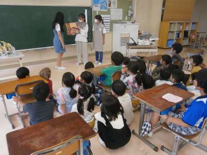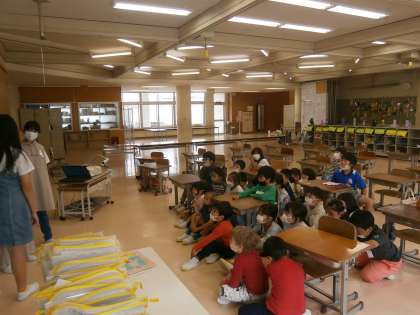 今日は「もったいないばあさん」と「ぼくのおふろ」を読んでもらいました。役柄ごとや場面ごとに読む担当を決めて、お話を盛り上げて読んでくれていました。今日も楽しかったです。6年生さんのおかげで本がどんどん好きになります。