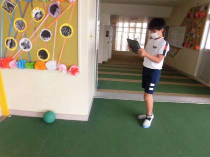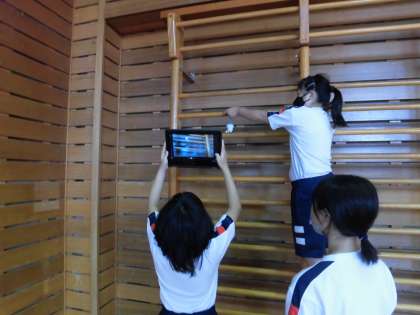 図画工作科の学習で、ストップモーションアニメを作成しています。写真をつなげると、コマ送りのように動きがつながります。ありえないことも想像力次第で形になっていきます。