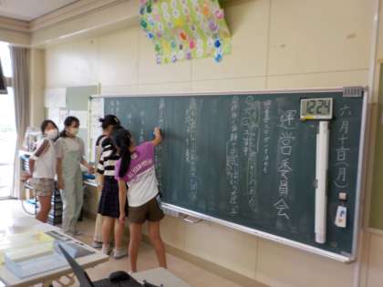 運営委員会では、先日行われた代表委員会で出たたくさんの意見をもとに、今年度の児童会目標を決めるため話し合いを行いました。