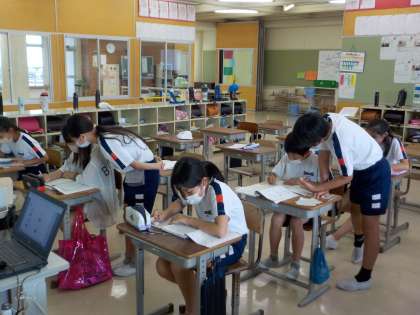 気が付くと、早く解き終わった子たちが、まだがんばっている子のそばに行き、教えてあげていました。友達と共に頑張ろうとする素敵な姿です。