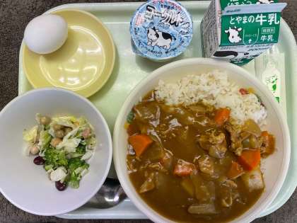 今日の給食は、子供たちの人気メニュー「カレーライス」です。