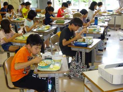 どの教室でも、おいしそうにカレーをほおばる姿が見られました。
