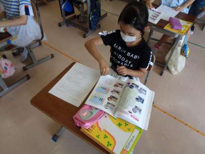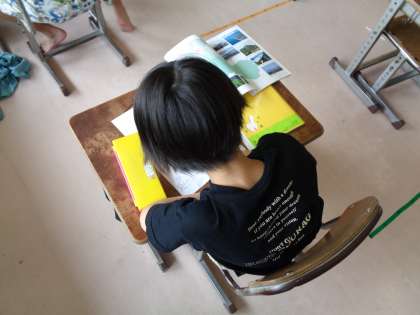 社会では、富山市の学習をしています。それぞれがおすすめの場所や施設を決めて、「わたしたちの富山市」を使って調べ、まとめました。みんなに伝わるように言葉や絵を工夫してまとめる姿がありました。