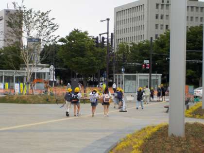 富山駅北口から富山県美術館までは、グループごとに決めた道順で移動しました。