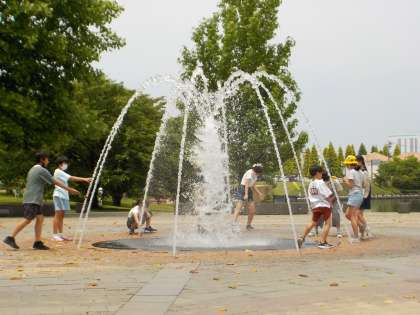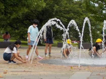 お弁当を食べ終わると、「みんなで鬼ごっこしようぜ」と声を掛け合い、広い公園を思い切り走ったり、噴水の水で遊んだりしました。