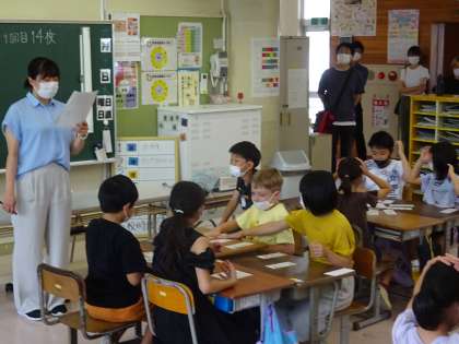 2組は国語科「かんじーはかせの都道府県の旅 かるたで覚えよう」