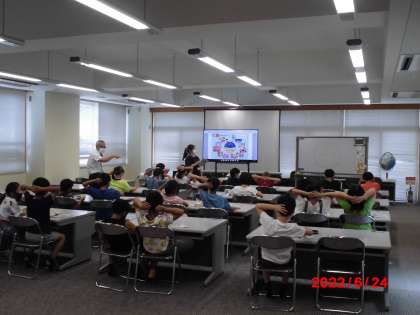 2組の金曜日6時間目は外国語活動が入っています。一週間の最後ということもあり、疲れが表情に出ているところですが、明るく楽しく活動している姿があります。