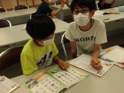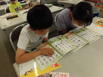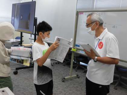 外国語科では、教科を英語で伝える学習を進めています。国語や算数等普段学習している教科も、「英語で」と言われると、少し難しく感じます。今日は、時間割表の通りに、英語で伝える練習をしました。