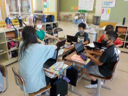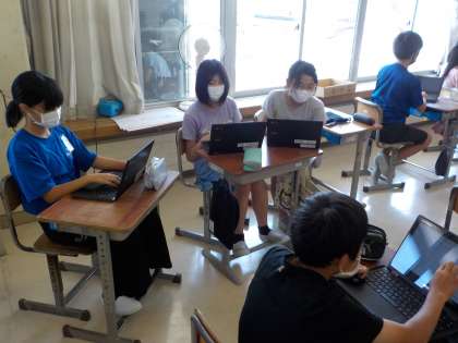 今日は、互いに知っている環境問題を出し合い、どのテーマを取り上げるかグループで相談しました。