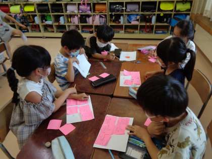今日は、「あったらいいな」と思うものをグループで発表し合いました。