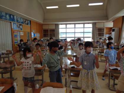 今日は「手のひらを太陽に」を歌いました。歌詞に合わせた振り付けで踊ったり、歌ったりして、みんなの楽しそうな笑顔をたくさん見ることができました。