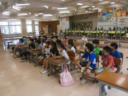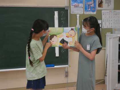 1学期最後の6年生の読み聞かせタイム。今日は「おかんとおとん」を読んでもらいました。上手な大阪弁の台詞を聞いてクスクス笑ったり、時には真剣に聞いたりしてお話を楽しみました。最後に「また来てね。」とお願いしていました。