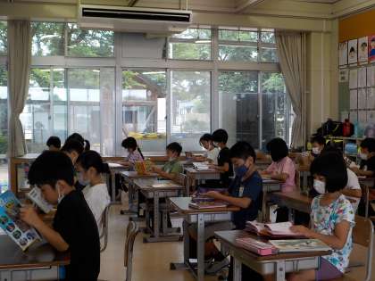 水曜日の1時間目は全校一斉の読書の時間です。短い時間ですが、自分の読みたい本の世界に浸っています。