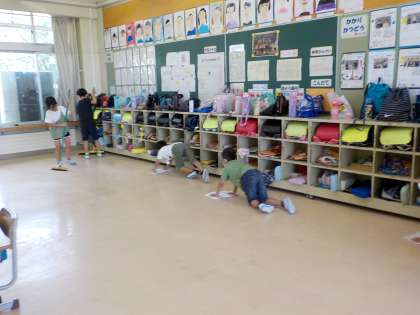 一日の終わりには、掃除をします。グループで力を合わせて掃除をしています。