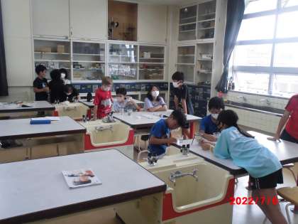 今年度で初めて理科室で実験をしました。