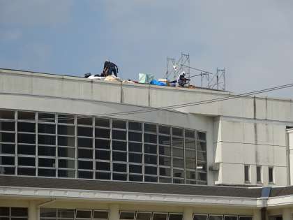 校舎や体育館の傷んだ屋根の修繕工事が始まっています。