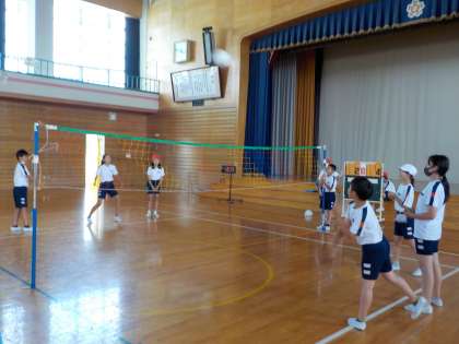「レシーブ」「キャッチ」「アタック」と声を出しながら取り組むチーム、役割分担してゲームを進めるチームなど、様々な工夫が見られるようになりました。