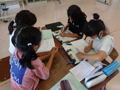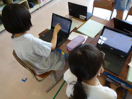 総合では、大庄のすてきについて調べています。今日からは本格的にまとめ作業に入りました。まず、どのようなすてきを伝えたいか話し合ってからクロムブックを使ってまとめはじめました。どうしたら伝わるか考えながらまとめようとする姿がすてきでした。