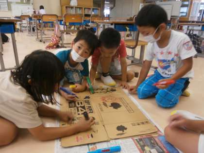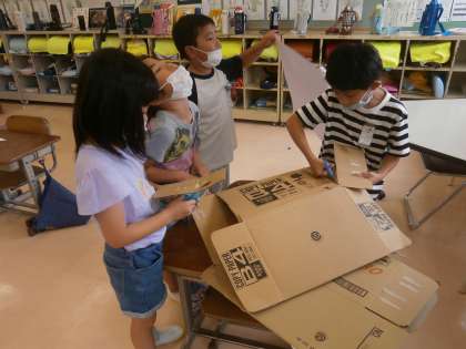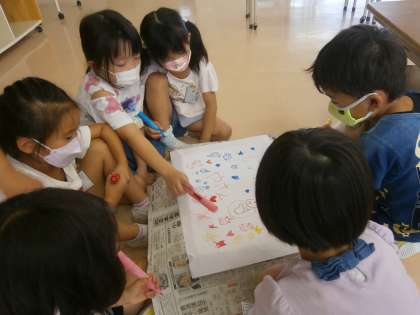 天気がよければ今週木曜日に水遊びを計画しています。水かけ鬼ごっこチームと色水遊びチーム、的当てチームに分かれて準備をしました。