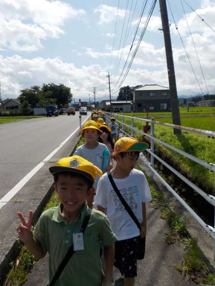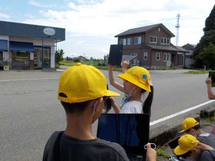 生活科の町探検に行きました。大庄地区にある「すてき」を見つけに行きました。暑い中でしたが、地図にメモをしたり、写真とをったりするなど、意欲的に学習に取り組んでいた子供たちです。