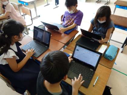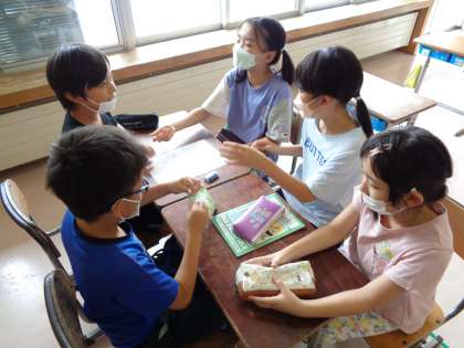 今日は会社ごとに活動内容を振り返りました。立てためあてが達成できたか、会社ごとに話し合い、活動の様子を振り返っていました。来週は会社ごとに企画を持ち寄って、集会を行う予定です。準備も着々と進めています。1学期を笑顔で締めくくることができるといいですね。