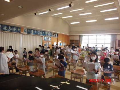 体の伸ばし方や発声の仕方を楽しく教えてもらい、元気に2曲歌いました。