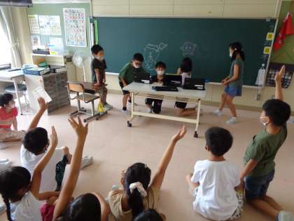 お楽しみ会後半の様子です。思いやりをもって楽しく活動できる場面が増えてきました。今日できたことはこれからも続けて、うまくいかなかったことは2学期できるようにチャレンジしていきたいですね。