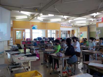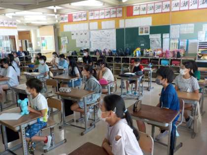 画面に向かって真剣に話を聞いたり、1学期にがんばったことを発表した人に拍手を送ったりする姿は、最高学年らしく立派でした。