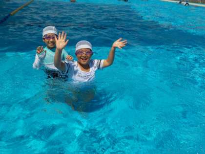 「先生見てー」と言われたので行ってみると、プールの中で1回転できるようになったことを見せてくれました。
