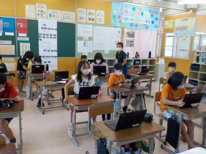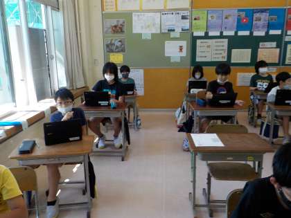 今日から2学期のスタートです。よりよい自分を目指して全力でがんばろうと目当てを立てました。学校や学級のために、進んで働こうと決めたり、学力アップのために家庭学習をがんばろうとしたり、新しい気持ちで目標を決めchromebookで入力しました。
