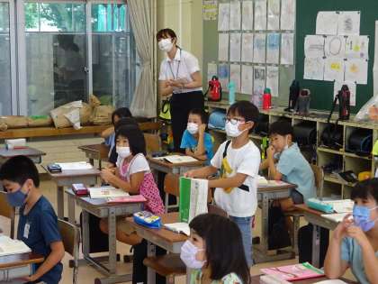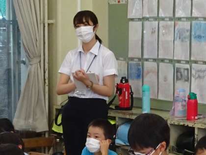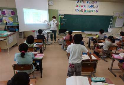 今日は、来週から産休に入る按田先生のかわりに、2年1組の担任をしていただく石川先生がこられました。按田先生のお休みは寂しいけれど、来週からは石川先生と元気にがんばります。