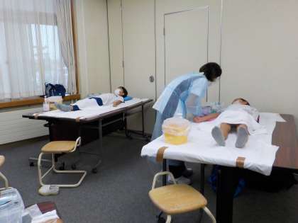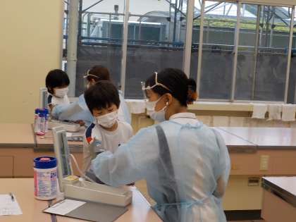 今日は、すこやか検診がありました。初めての採血にドキドキしながら、最後までがんばりました。