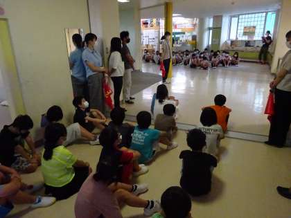 その後は、洪水被害を想定して3階への避難練習も行いました。
