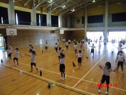 音楽に合わせてのリズムダンスです。今日は準備体操と2種類の曲を聞いてまねをしました。2種類の曲の中から一つ選んでグループごとで発表をします。1回1回の練習を大切にしましょう!