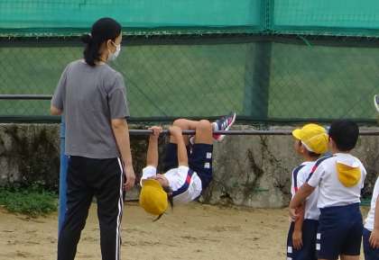体育の時間にグラウンドで「てつぼうあそび」をしました。