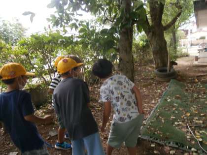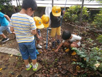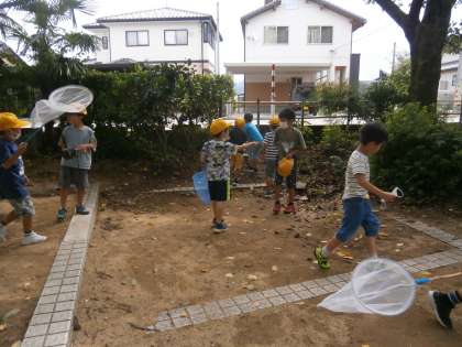 休み時間になると虫取りに夢中です。今日はバッタと小さなクワガタも捕まえることができて、大喜びでした。土や木の枝を入れたり、えさに野菜を入れたり一生懸命お世話をしています。