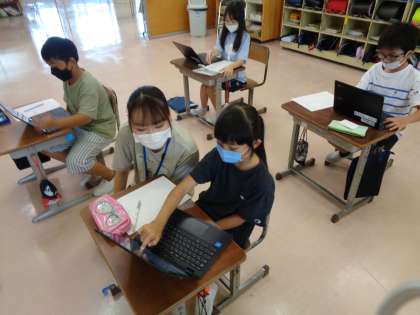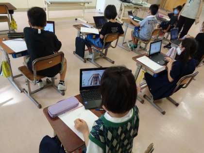 理科では、前回の学習まででこん虫のすみかについて考えていました。今日は、こん虫のからだのつくりについて、1学期の学習を振り返りながら調べました。クロムブックを使っていろんな角度からこん虫のからだのつくりを調べることができました。