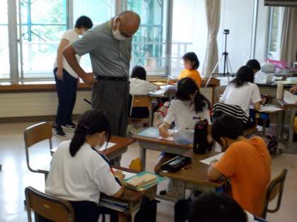 黙々と取り組む様子と、友達に優しく教える姿、一緒に悩んでいる姿。