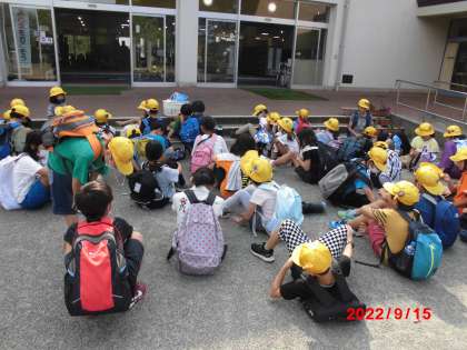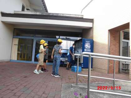 待ち時間に、自販機の補充をしている方の仕事を見学している人たちも。